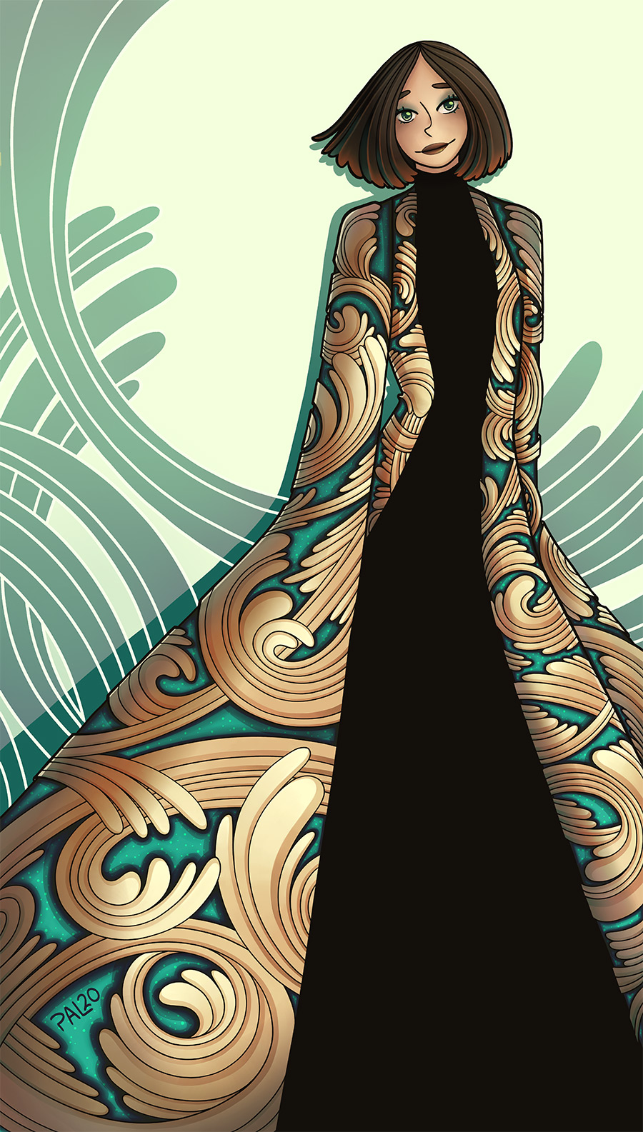 To achieve that, I focused on simple lines and patterns, which allowed me to create flowing and elegantly curved lines, which came together to create a sense of motion in the piece.