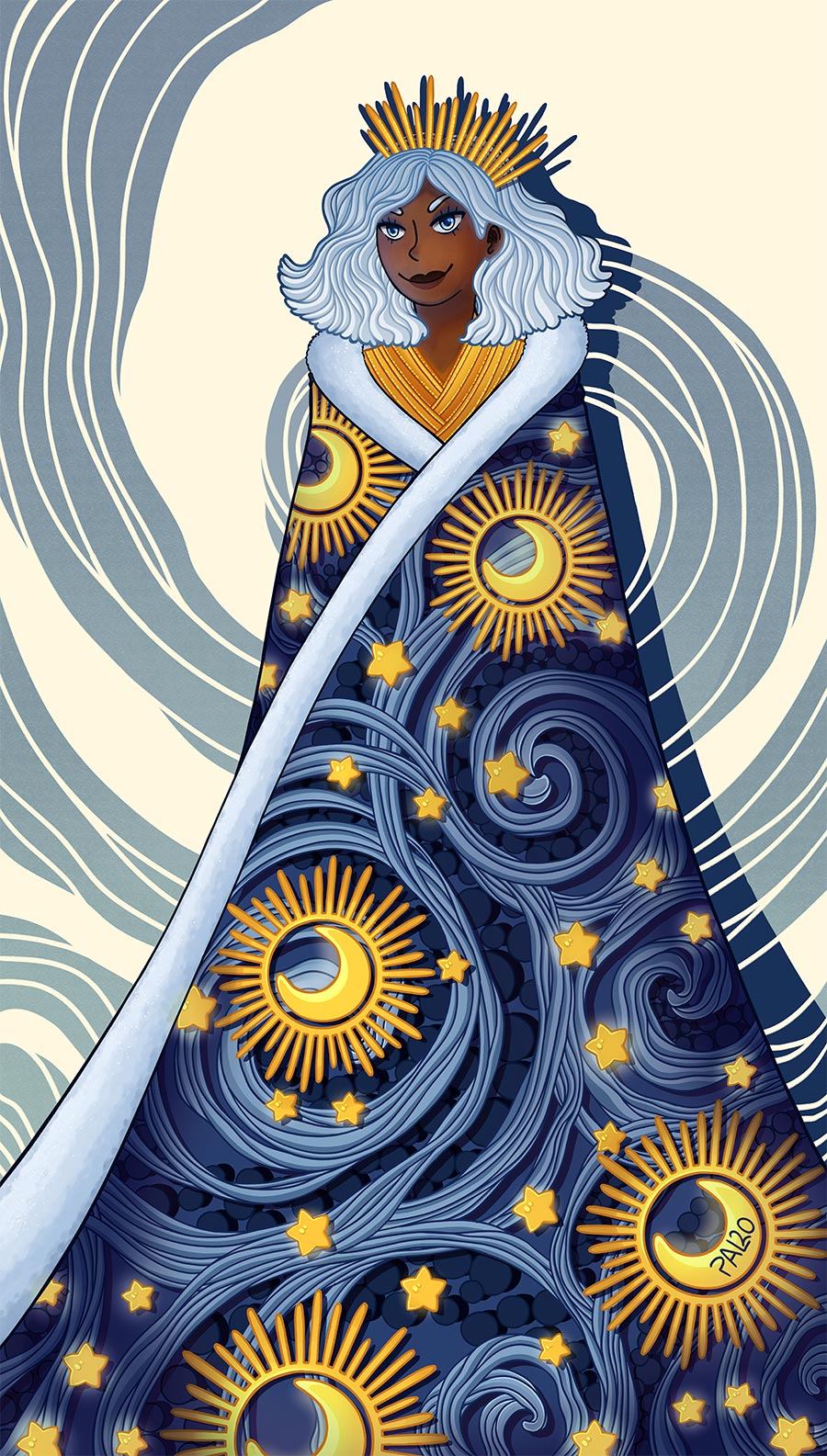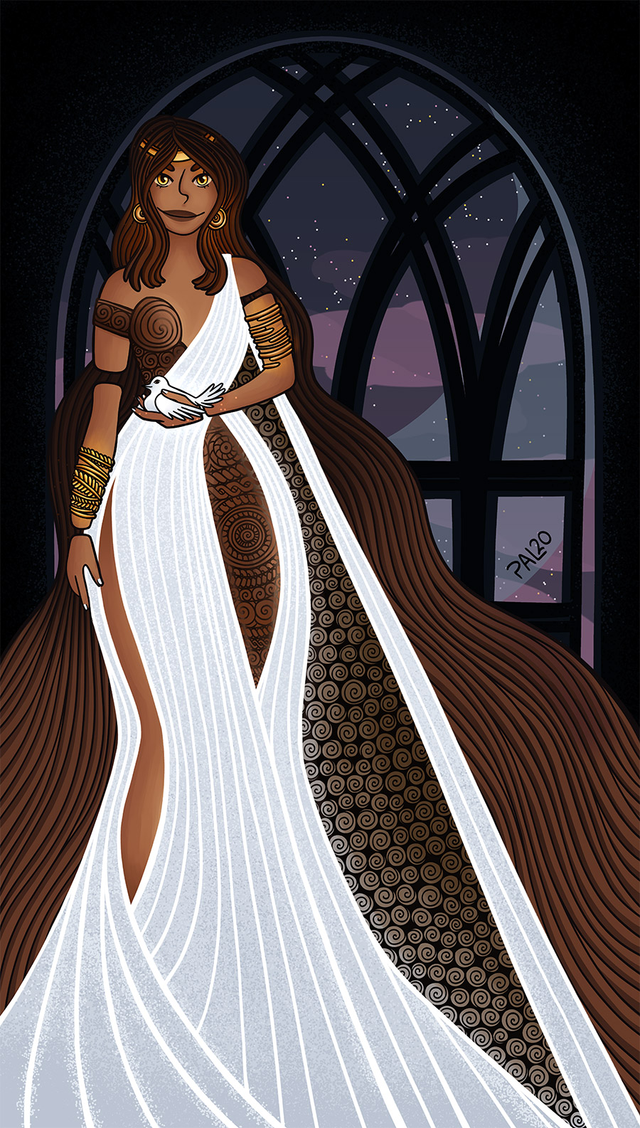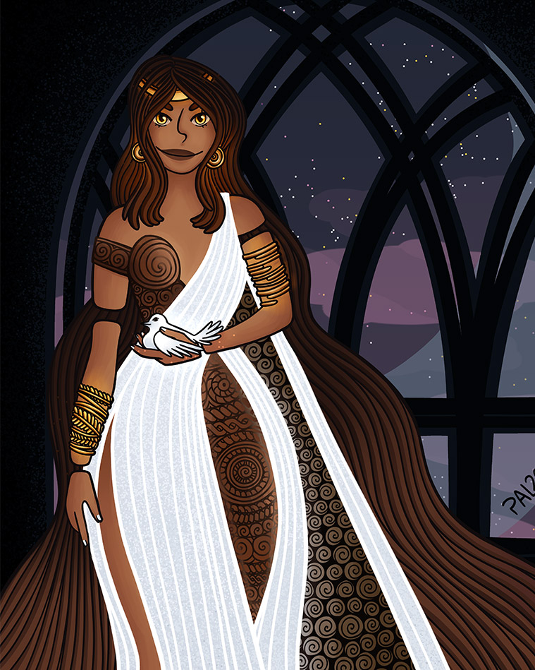 As for the focus of the piece, I went with the goddess Astarte, which led me to incorporate Phoenician inspired geometric patterns in the design.